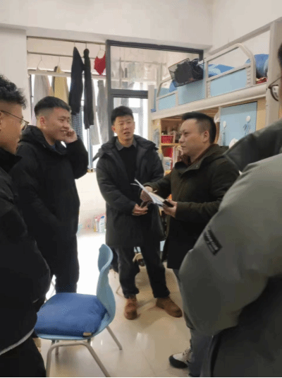 2024年2月25日,学院党委副书记孟忠常带队,研究生辅导员曾浩老师、2020级辅导员李娇娇老师、2023级辅导员冉坤老师、2022级工程造价班主任张平老师、2022级辅导员刘倩麟老师与学生干部走访学生宿舍,关心慰问学生,了解学生返校后的生活与学习情况,确保他们能顺利开启新学期。